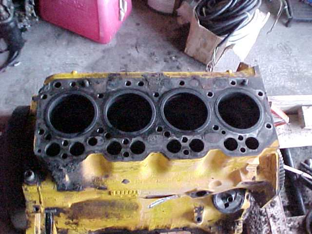 | Once we got the assembly home, we removed the radiator and pump from the engine. The dozer manual said water consumption can be caused by a; leaky head gasket, cracked cylinder liners cracked head or block, or failed liner O-rings. Let's see what we can find! | ![]() |